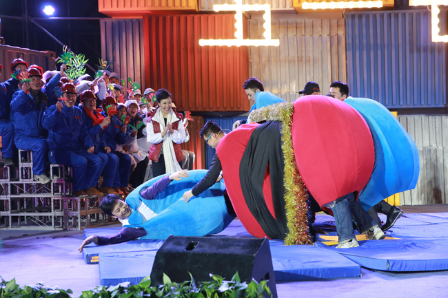 本次《五一七天樂》節(jié)目的主題是“五一七天樂,勞動(dòng)更快樂”。節(jié)目在獨(dú)具勞動(dòng)特色的開場(chǎng)舞《最炫民族風(fēng)》中拉開演出序幕,于文華、管彤推著小推車出場(chǎng),車上的大箱子引起了觀眾們的好奇。正當(dāng)觀眾遺憾和猜測(cè)禮物是什么的時(shí)候,老畢出奇意外地從箱子里出來,這份始料未及的“大禮”頓時(shí)引起了現(xiàn)場(chǎng)觀眾一陣歡呼。隨后其他嘉賓分別騎玩具小車登臺(tái),《五一七天樂》節(jié)目開始。節(jié)目以比賽的形式進(jìn)行,眾位嘉賓分成“紅薯”和“拔絲”倆隊(duì),現(xiàn)場(chǎng)比拼才藝。