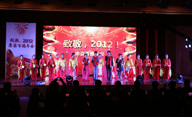 本次年會(huì)在喜慶熱烈的紅綢舞中拉開帷幕。主持人,督導(dǎo)師,講師團(tuán)以及公司高層領(lǐng)導(dǎo)逐一亮相,全國各地的經(jīng)銷商以視頻拜年的方式向康姿百德人送上新春祝福??底税俚鹿径麻L、總經(jīng)理李銀祥發(fā)表了激情洋溢的講話:2012年康姿百德取得了驕人的成績,銷售得到了提升,市場得到了開拓,品牌形象得到了社會(huì)的認(rèn)可,正可謂“風(fēng)景這邊獨(dú)好”。2013年是充滿機(jī)遇和挑戰(zhàn)的一年,注定要付出更多的努力,揮灑更多的汗水,康姿百德也注定會(huì)得到更多的收獲,創(chuàng)造更加燦爛的輝煌。李總的講話情真意切,催人奮進(jìn),更加堅(jiān)定了大家把康姿百德做大做強(qiáng)的決心和信念。