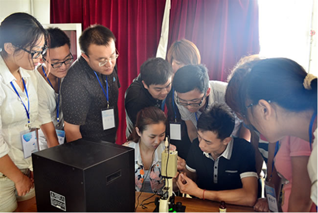 學(xué)員們?cè)诶蠋煹闹笇?dǎo)下做實(shí)驗(yàn)