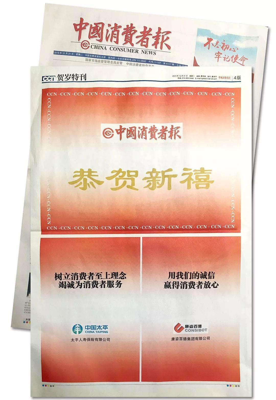 2019年12月31日,康姿百德再次榮登《中國消費(fèi)者報(bào)》,這也是2019年第四次榮登此報(bào)。本次《中國消費(fèi)者報(bào)》邀請了在消費(fèi)維權(quán)領(lǐng)域成績優(yōu)秀的幾家知名企業(yè),康姿百德作為受邀企業(yè)之一在賀歲版面進(jìn)行刊登,在新年來臨之際,為廣大消費(fèi)者送上新春祝福。