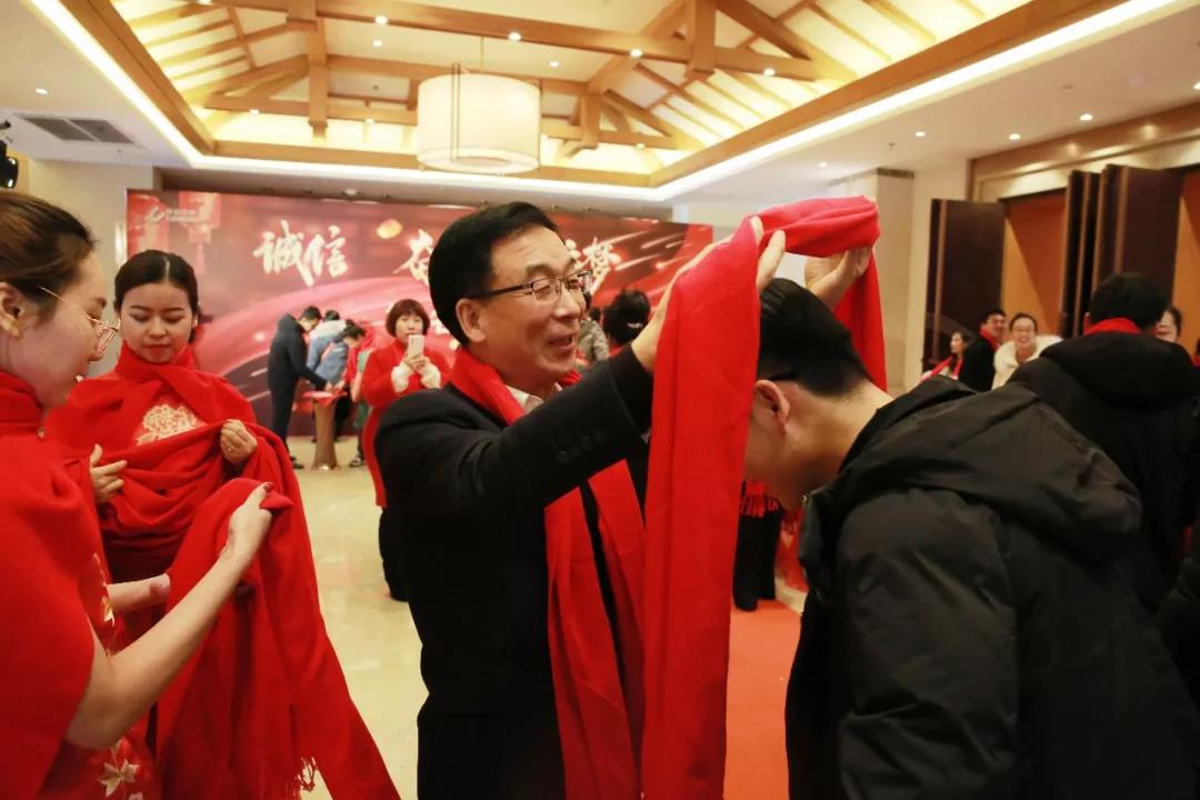 家人們滿懷喜悅的心情,昂首闊步走在會場入口的紅毯上。不得不說,紅毯秀是最能凸顯家人們氣場的環(huán)節(jié),此刻,他們就是最耀眼的明星。“紅圍巾,福氣臨”,公司領(lǐng)導們親自為家人們佩戴上了紅圍巾,愿家人們來年更紅火!家人們紛紛在簽名墻上留下了自己的簽名,這不僅有對2019年的感觸,更有對2020年的期待。