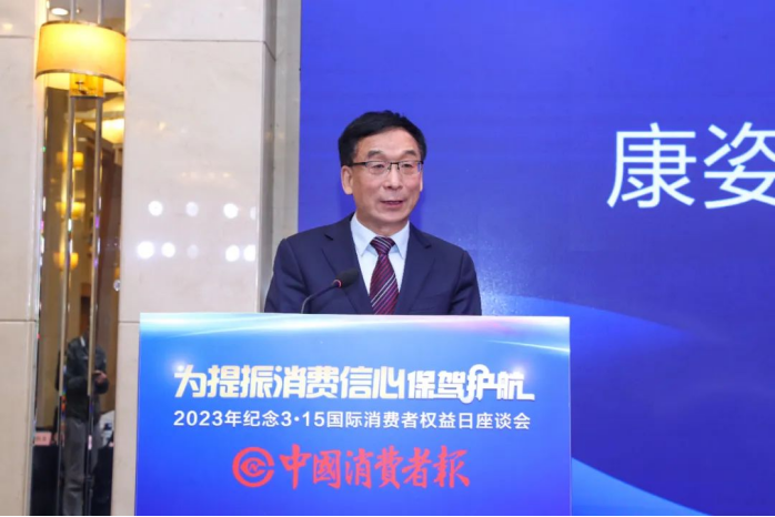 3月14日,2023年度“紀(jì)念3·15”國際消費者權(quán)益日座談會在京召開。來自國家市場監(jiān)督管理總局相關(guān)司局負(fù)責(zé)人、中國消費者協(xié)會領(lǐng)導(dǎo),以及在保護(hù)消費者權(quán)益方面貢獻(xiàn)突出的典范企業(yè)等,共同參加本次座談會??底税俚录瘓F(tuán)董事長李銀祥作為保障消費者權(quán)益的優(yōu)秀企業(yè)代表,受邀出席并作主旨演講。