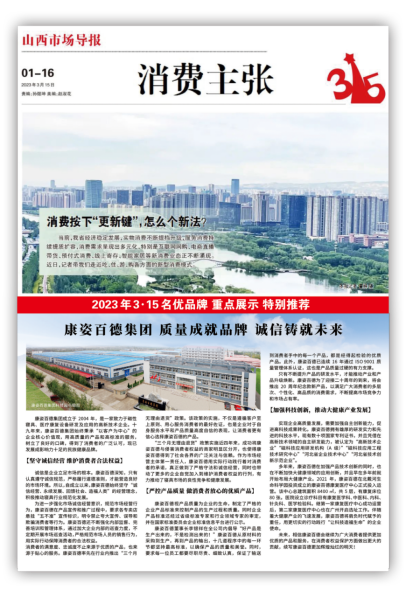 2023年是把握市場機(jī)遇的關(guān)鍵之年,面對全新的機(jī)遇和挑戰(zhàn),康姿百德充分展示出了在大健康領(lǐng)域的專業(yè)服務(wù)能力和領(lǐng)先優(yōu)勢,取得了令人矚目的輝煌成績。同時公司也受到了中國消費者報、市場監(jiān)督管理雜志、河北經(jīng)濟(jì)日報、河北日報、山西市場導(dǎo)報、遼寧電視臺、宜昌電視臺等多家權(quán)威媒體和主流視頻平臺的全方位、多視角報道,實現(xiàn)了全網(wǎng)絡(luò)覆蓋,全平臺傳播。