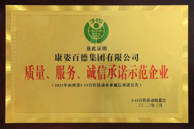 康姿百德榮獲“誠信典范企業(yè)”榮譽稱號