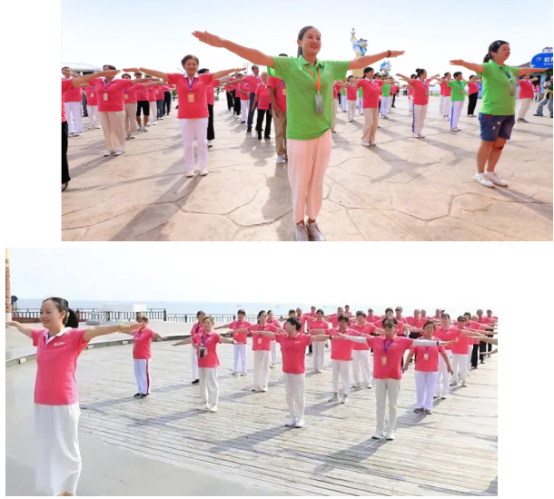 活動伊始,來自吉林延邊、吉林長春、黑龍江哈爾濱、黑龍江牡丹江、遼寧沈陽、江西九江、山西忻州、安徽阜陽、浙江寧波、河北承德、湖北隨州、湖南益陽、湖南郴州、四川廣元、四川綿陽、山西晉中、河北石家莊、內(nèi)蒙古呼和浩特、黑龍江大慶、湖北武漢、四川達州、湖北黃岡、湖北廣水、遼寧盤錦、天津、湖南湘潭、四川成都、云南昆明等地的健身操愛好者們齊聚一堂,他們帶著對健身的熱愛、對健康的追求,共同點燃了這場全民健身盛宴的第一把火,讓北戴河與山海關(guān)的每一寸空氣都彌漫著激情與活力。